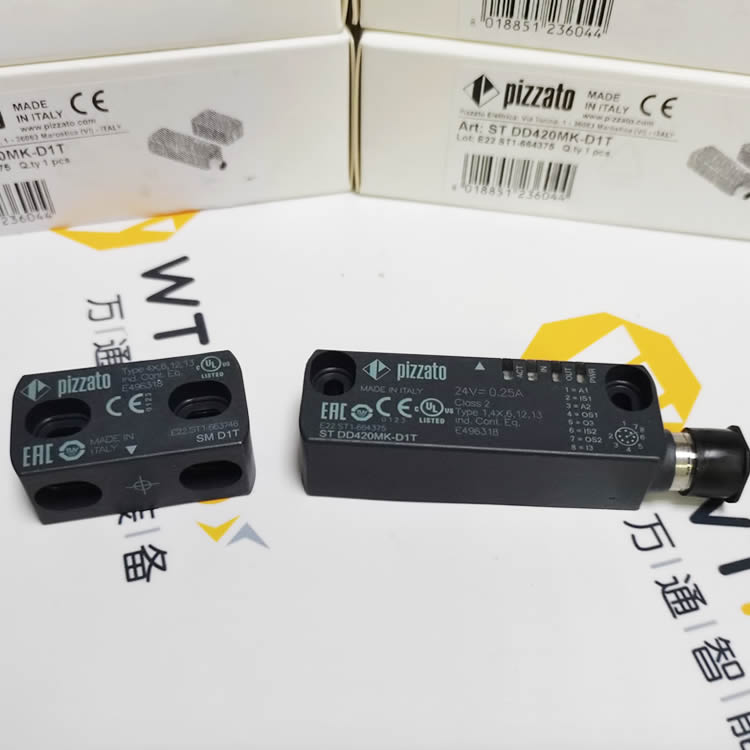 PIZZATO ST DD420MK-D1TRFID安全传感器, 24VDC, M12 8 针连接器, 12MM系列, 标准执行器, 高电平